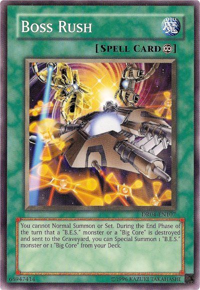 You cannot Normal Summon or Set. During the End Phase of the turn that a "B.E.S." monster or a "Big Core" is destroyed and sent to the Graveyard, you can Special Summon 1 "B.E.S." monster or 1 "Big Core" from your Deck.