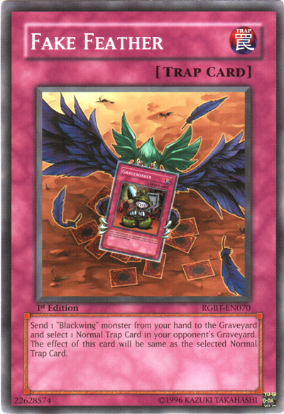Send 1 "Blackwing" monster from your hand to the Graveyard and select 1 Normal Trap Card in your opponent's Graveyard. The effect of this card will be the same as the selected Normal Trap Card.