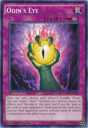 Once per turn, during each player's Standby Phase: You can target 1 "Aesir" monster you control; negate its effects until the end of this turn, and if you do, look at all cards in your opponent's hand and all Set cards they control. Your opponent cannot activate cards or effects in response to this effect's activation.