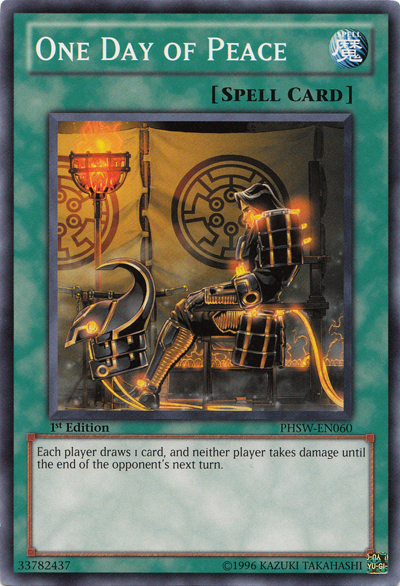 Each player draws 1 card, and neither player takes damage until the end of the opponent's next turn.